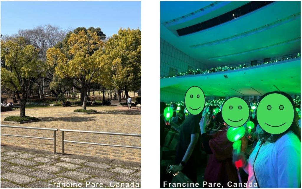 The place was beautiful both outside the hall and inside. The outdoor gardens were beautiful, I had time to explore them and even see Kim Eun Chong who was jogging before the show. The interior room is very well organized, and I was fortunate to have a seat for both nights in the third row, the first night on the right side and the second night on the left side of the stage, which allowed me to see both sides of the stage well. The first night we cannot take any pictures or film the concert but for the second night KHJ told us that we can take pictures or film. The store where we could buy souvenirs was very well organized and the access was very smooth. Really everything was perfect