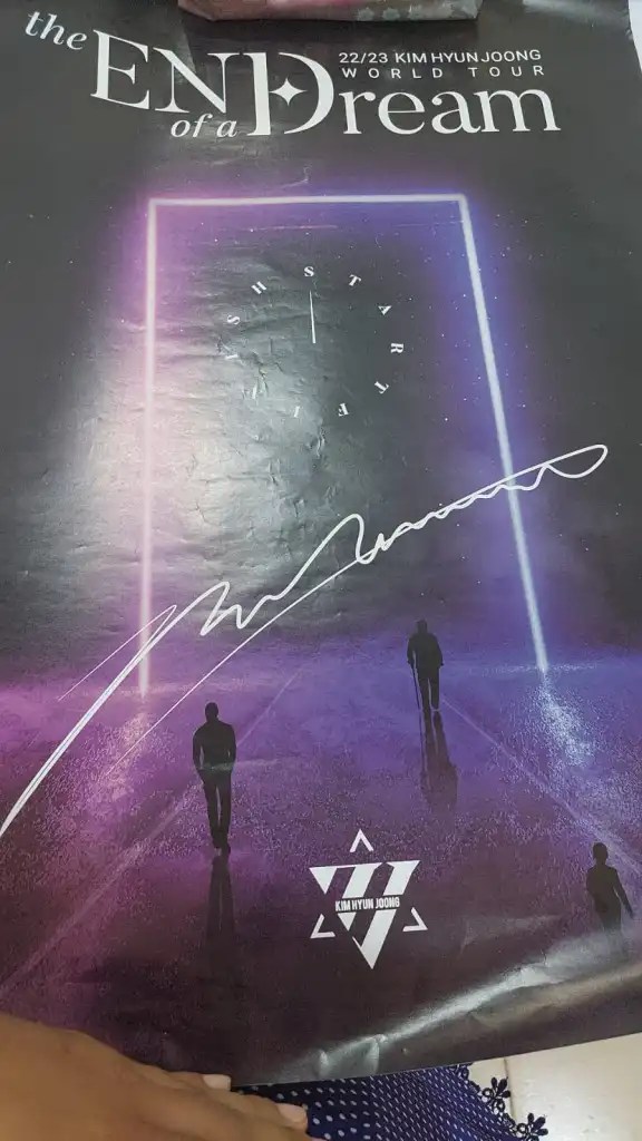 Two of us have won the raffle for a signed poster so we have come early to claim our prizes but there are already many people there waiting to get in. Mostly women, of all ages, but some men and kids too. Everyone there for one reason, to see KHJ. One of the staff came out to the line to tell us that the winners of the raffles need to come with him so my friend and I leave my daughter in line and join him at the gate to the venue.
