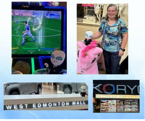 Francine was looking for me, she forgot that I like to play soccer. I took a picture to show you the name of the mall so if you want to go, you can remember what I talked about. I even took a ride on a unicorn and had lunch at a Korean BBQ.